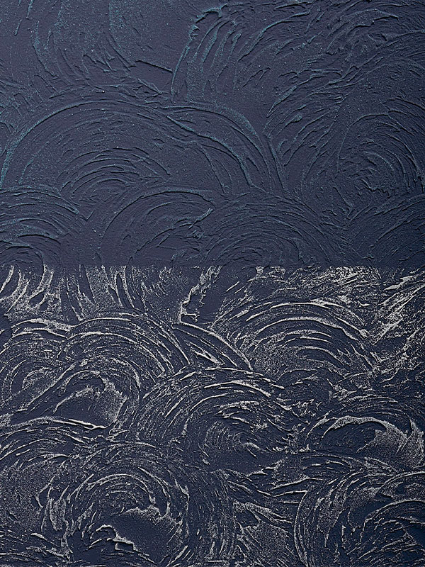 Заказать выезд замерщикаФактурная штукатурка ITALICA MASTICE – это пластичный материал, которым можно добиться разных эффектов и необычных результатов. Эффект «Драпе» с плавными, выразительными линиями напоминает волны Кацусики Хокусая с комбинирующим выкрасом – насыщенный синий с легким нанесением серебристого шелка.