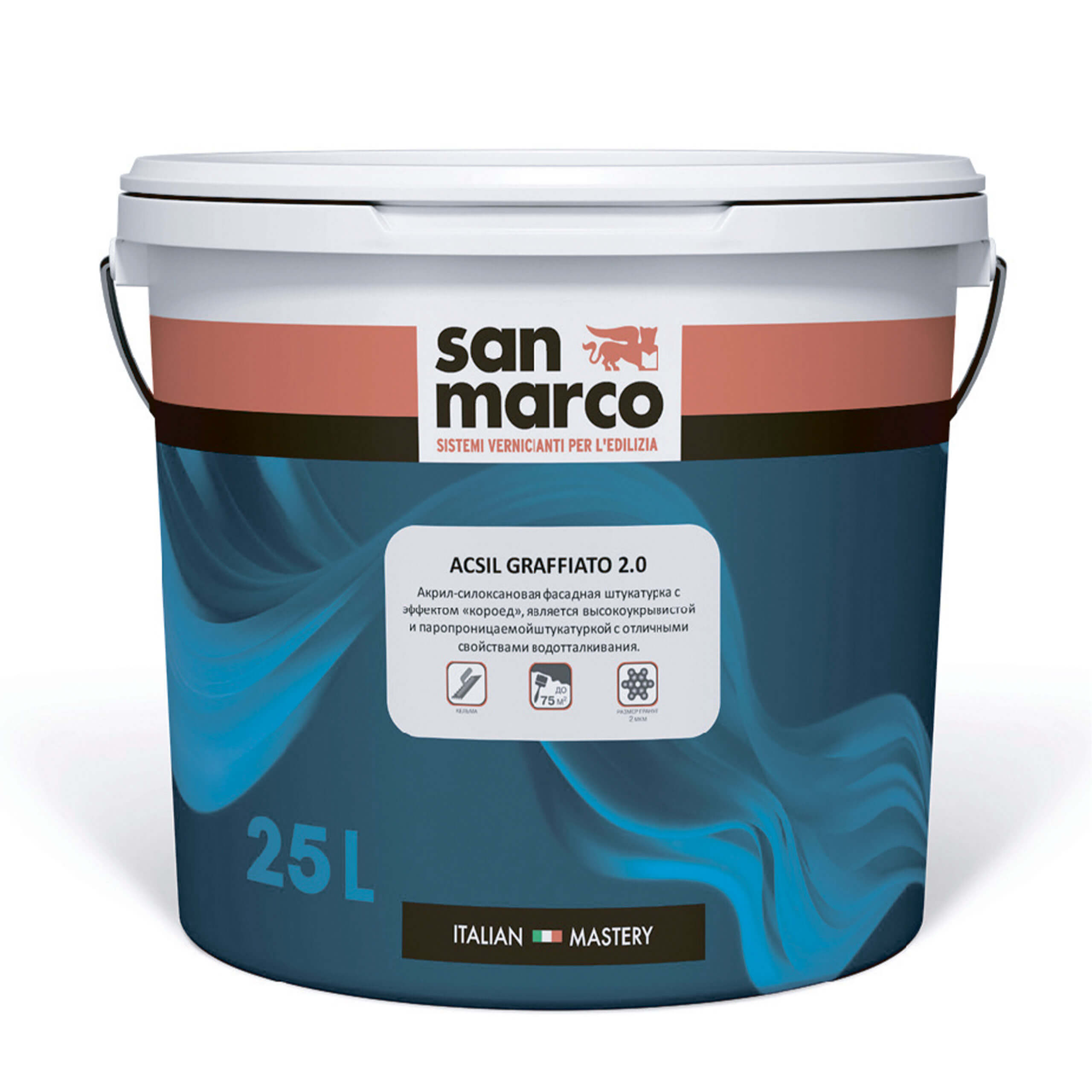 ACSIL GRAFFIATO 2.0 — это декоративная акрил-силоксановая штукатурка для фасадов, создающая фактуру «короед». Материал обладает высокой прочностью, стойкостью к агрессивным атмосферным воздействиям, отличной паропроницаемостью и водоотталкивающими свойствами. Благодаря устойчивости к грибкам и плесени идеально подходит для защиты фасадов зданий, включая теплоизоляционные системы.