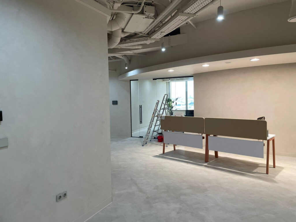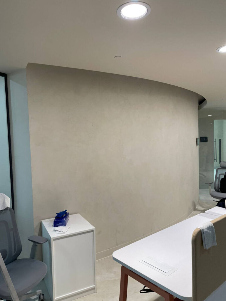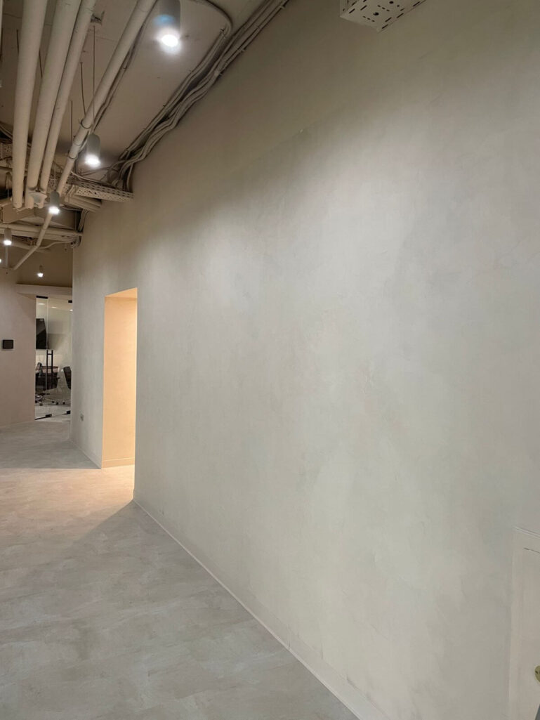 Венецианская штукатурка под микроцемент в интерьере офиса